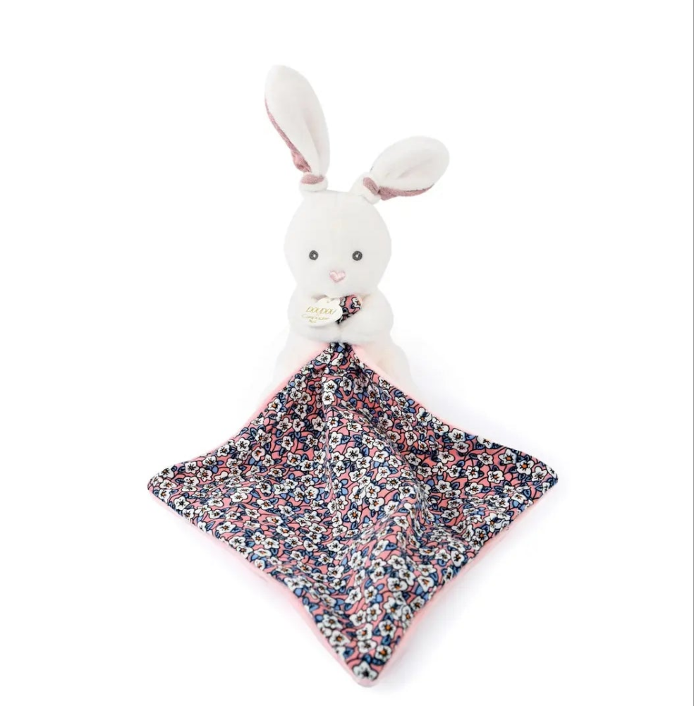 Your little one will love bonding with this bunny. Doudou is soft and cuddly on one side and adorned with a beautiful floral print on the other. This unique companion will be an instant favorite. Make memories they'll cherish forever!