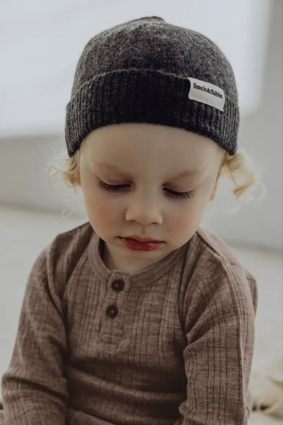 Keep your little one warm, comfortable and stylish in our beautiful ribbed wool-bamboo essentials. Long sleeve henley top with coconut button closure. Slim fit. Perfect for everyday wear, as a layering piece or as a part of your little one's pj's.